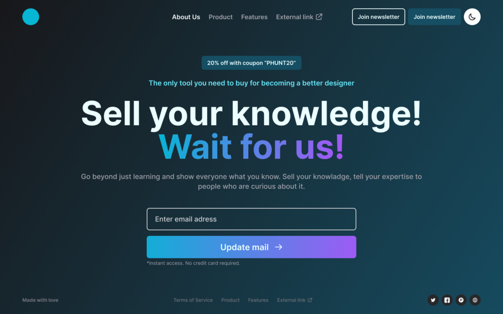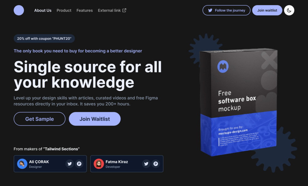 Unlock the power of hype building with Waitlist Page, your go-to template kit featuring over 52 unique Figma "coming soon" landing pages. Perfectly crafted for Kickstarter Campaigns, Product launches, startups, Newsletters, Notion templates, SaaS, eBooks, and more, this kit is designed to kickstart your project and captivate your audience from the very first click.