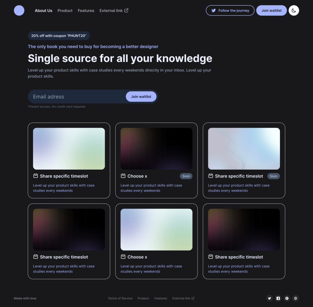 Waitlist Page isn't just about making things look pretty; it's about setting you up for success from day one. Whether you're a freelance designer eager to impress clients with rapid, robust prototypes or a startup looking to generate buzz pre-launch, Waitlist Page equips you with everything you need to get ahead.